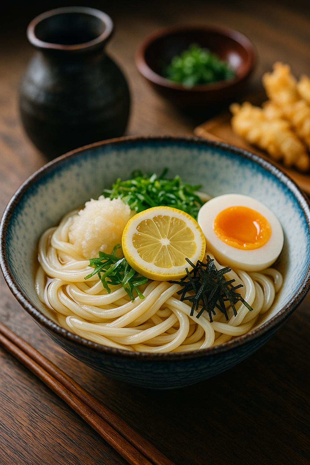 오사카에서는 여름 한정으로 유자 간장, 산마, 온천달걀 등 다양한 토핑을 더한 냉우동을 맛볼 수 있으며,